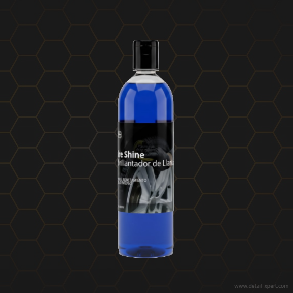 Abrillantador para llantas con tinte azul, libre de silicona, que brinda brillo intenso efecto húmedo; forma una película protectora contra rayos UV y suciedad, realza el negro del caucho sin residuos pegajosos ni salpicaduras.